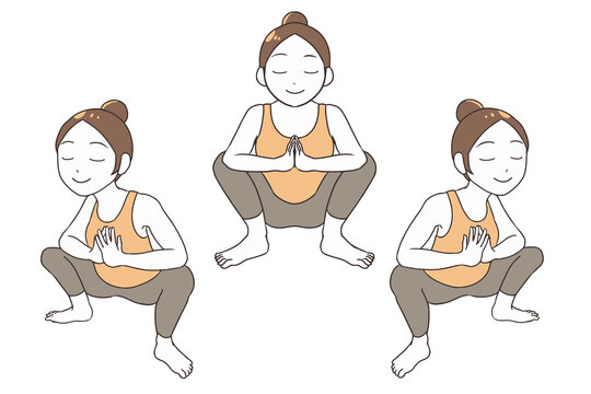マーラーサナ 花輪のポーズ のヨガをする女性のイラスト素材